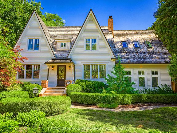 From time to time, a home is listed that stands out. Experience the charm & character of this fully redesigned Cape Cod home, nestled on a beautiful lot on highly desirable Birchview Drive in Lorne Park. Over 2500 sq ft of above grade, finished with the highest quality materials & crafted millwork. Featuring a Perola Kitchen with solid wood cabinetry, Caesarstone countertops, built ins, glass display cabinets, storage hutch, soft close drawers & pull outs, hidden pantry & under cabinet lighting. The main floor has a functional layout with a warm welcoming foyer with 2 custom built in coat closets & a library/office with French doors featuring solid wood bookcases, gas fireplace & custom mantle. The entire home is highlighted by beautiful rich hardwood floors, craftsman doorcasings, oversized baseboards & mouldings. The Sunken Family room has a wood burning fireplace, picture windows, 10ft coffered ceilings & glass doors opening out to the covered deck & backyard. Natural light fills this elegant home while oversized picture windows that frame the dense mature evergreens, flowering tree canopy and perennial gardens from every room. Multiple covered decks & sitting areas linked by stone walkways provide outdoor areas to enjoy the tranquility & privacy of this extensively landscaped property. Upstairs the primary bedroom retreat features a vaulted ceiling, 3 skylights, Juliette balcony, His & Her closets & a 5 piece, spa like ensuite, 3 additional bedrooms, a reading nook, laundry closet and a main bathroom with pocket doors. The basement has hardwood & above grade windows, cold storage & a laundry room as well as a cozy recreation room with gas fireplace, & a gym equipped with rubber flooring.The oversized detached garage provides ample parking for 2 cars, storage & workshop area with side entrance, electric garage door opener, 200 amp electrical service. Short walk to schools, shops, Lake & easy access to QEW & GO. A home like this rarely comes along!