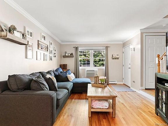 Perfect Springdale location! Walk to everything: train, restaurants, shopping, library and school. Spotless 2 bedroom, 1/1 bath, 2 story unit in self run, pet-friendly complex next to a beautiful park. Bright, sunny open floor plan and like-new appliances. Hardwood floors throughout, laundry in unit, ample storage in lower level. Water included in low common charges. Sliders leading to patio overlooking the park. A great place to call home!