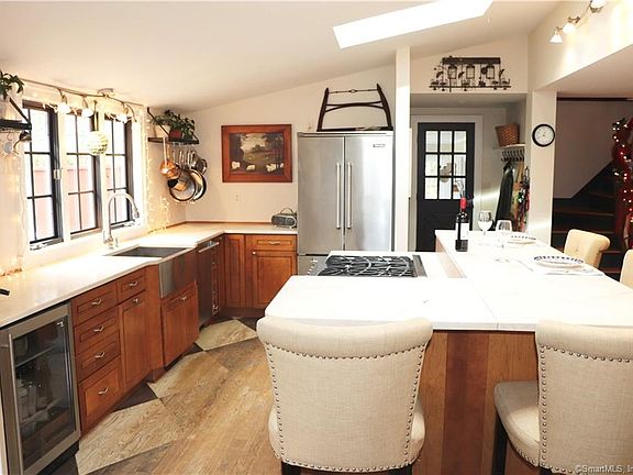 Charming, fully renovated antique colonial on 5+ acres with three stall horse barn and paddocks and two additional garages. Hardwood floors throughout; three gas fireplaces; master en suite; open kitchen/keeping room with fireplace, Viking appliances, marble counters, and walk-in pantry with laundry; large family room with built-in bookcases and coffered ceiling. Property is fully fenced and nicely treed for privacy. Electric dog fence, outdoor shower, and large vegetable and flower gardens with fruit trees. Hiking/riding trails. Walking distance to South Glastonbury village. Easy access to Rt. 2 and Glastonbury Center.