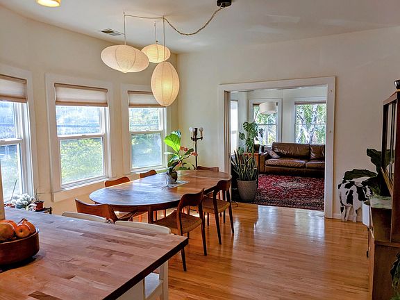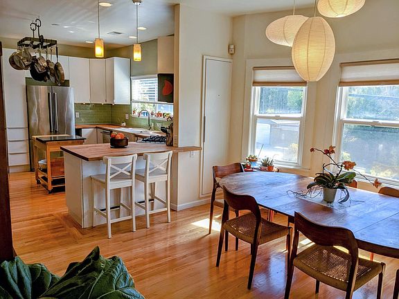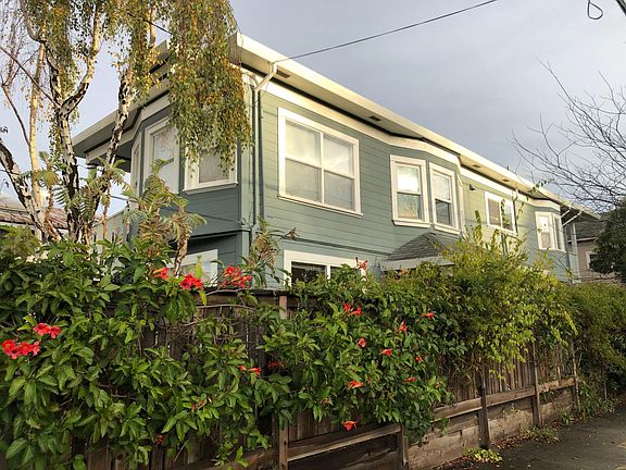 Lovely N. Oakland home in a great neighborhood bordering Emeryville and Berkeley that has been owners' home and maintained accordingly. Amazingly light with high ceilings and hardwood floors, this gated property has 3 bedrooms, 2 baths (including one en suite), spacious kitchen, and formal living room and dining room. House sits perched on a corner lot above a quiet avenue, and is raised from the street. The yard is landscaped and popping with color from flowers, and is a nice place to enjoy some coffee. The yard and laundry are shared with downstairs friendly neighbors who keep chickens and garden next door. Bicycle storage is available so that you can take advantage of the Doyle St. pedestrian/bike greenway that takes you to West Berkeley Bowl or Doyle Park. It is 2-3 blocks to major transportation options including Transbay Bus to the City, the free Emerygoround shuttle to Macarthur BART, 36 bus to UC Berkeley and the 72R to downtown Oakland. Dedicated off street parking space included in rent. Home will be unfurnished. 1 year lease preferred. 1 year lease is renewable. Owners pay for water and garbage/recycling/compost. No smokers, no pets, no subletting. Be good neighbors. Shared yard, shared laundry.