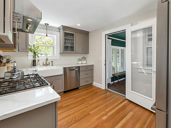 Welcome to this charming Cape boasting pride of ownership with significant upgrades! Upon entering the sunny breezeway, you will be greeted by the tastefully renovated kitchen with gleaming hardwood floors. Continue on to the comfortable living room and an adjacent formal dining room featuring abundant natural light. First-floor layout also includes a bedroom and bath, providing the option of one-level living. Upstairs lies the primary bedroom plus sitting area & possible office nook. The unfinished basement offers additional expansion options, flex space, and storage. Whether relaxing or entertaining, enjoy the privacy of the patio and fully fenced backyard. This inviting home is located in a desirable neighborhood, close to restaurants, shopping, and major highways. Welcome home! Showings begin at the open house on Friday.