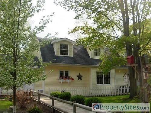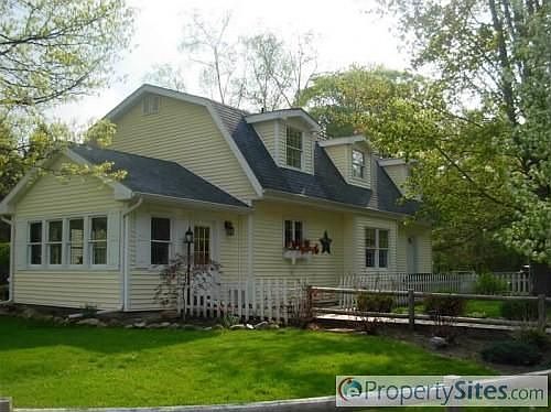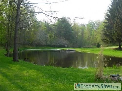 Great private setting on almost 12 acres with stocked pond. Clean 3 bedroom cape cod with large bedrooms. Both baths have been updated with ceramic tile. Hardwood floors in living room with gas log fireplace and 2 sets of French doors. Newer tile floor in kitchen, with newer countertops and a window seat. Other updates include newer roof and siding, furnace and air are 10 yrs old . Newer sun porch is heated. The home has city water and gas. Great storage with a basement and a few other out buildings.
