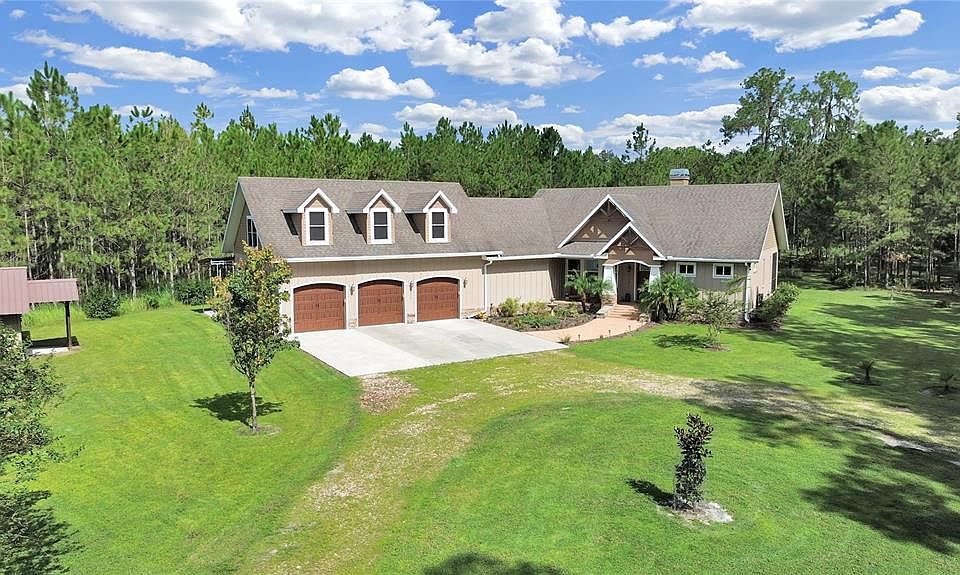 Nestled on 9.7 private acres bordering the breathtaking 5,515-acre Chito Branch Reserve, this custom-built estate by renowned builder Michael Willis offers the perfect blend of modern luxury and tranquil country living. The thoughtfully designed 2,432 square feet heated living space (4,663 Sf under roof) features high 10-foot ceilings, 8-foot doors, and exquisite crown molding, with wood floors flowing throughout the home. The chef’s kitchen boasts a gas stove, leathered granite countertops, and custom cabinetry, while the versatile gas fireplace, convertible to wood-burning, adds a cozy touch. Designed for comfort and security, the home includes a fortified safe room with solid concrete walls and an 8-foot safe door, a state-of-the-art alarm system, and surveillance cameras. Energy-efficient construction with foam-insulated concrete block walls is complemented by two A/C units for optimal climate control. Above the spacious three-car garage is a 625-square-foot unfinished bonus room, offering endless customization opportunities for a mother-in-law suite or that 4th and 5th bedroom. Outdoors, enjoy a large aluminum carport, an alarmed shed with electricity, an outdoor shower, and a pavilion set on a concrete pad—perfect for entertaining or relaxing. The property is further enhanced by a modern septic system, a comprehensive well water treatment system, and prewiring for a portable generator. With its unparalleled privacy, abundant wildlife, stunning natural surroundings, and thoughtful amenities, this property is a true gem for those seeking a serene retreat or a functional family home.