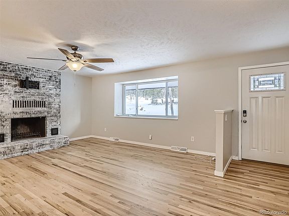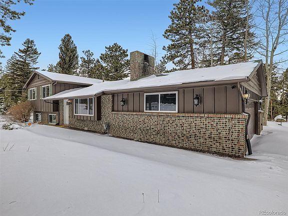 Picture perfect corner lot home located on 1.4 acres of land in Coal Creek Canyon yet just a short drive to Hwy 72 providing an easy commute to retail, restaurants, and more! You will be impressed the moment you enter with the open floor plan and beautiful finishes. You'll find hardwood floors throughout the main level, a beautiful fireplace that is perfect to keep warm, and a luxurious open kitchen. The kitchen features a large central island with a breakfast bar, stainless steel appliances, granite countertops, and beautiful white cabinets. Don't miss the bright sunroom that allows you to enjoy the views year-round. The upper level has 3 bedrooms and a full updated bathroom; the basement offers additional living space with a family room that boasts a cozy wood stove and the primary bedroom and en-suite bath. Recent upgrades include: fresh interior paint and new flooring in the sunroom. Click the Virtual Tour link to view the 3D walkthrough. Welcome home!