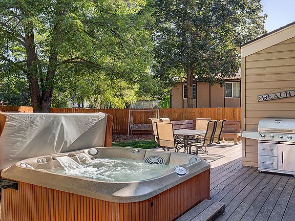 Abundant living begins here - pool side! Grand entry way with vaulted ceilings welcome you, as you step into this quality home. Roomy, functional kitchen features new flooring, stainless steel appliances and unbelievable storage. Retreat to the custom master suite with walk-in tiled shower, or relax on designated balcony. Daylight basement has lovely gathering room, a large bedroom, full bath and generous utility room perfect crafting. Chickens are even welcome here - come home to Combes Park.