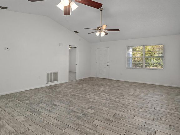 3 BEDROOM 2 BETHROOM 2 CAR GARAGE home located on close to shopping with NO HOA. This home is has a private backyard which is FULLY FENCED and includes a storage shed. This sought after floor plan features a spacious living room and dining room combination with wood-look ceramic tile flooring PLUS a separate dinette area in the kitchen with an indoor laundry room. The kitchen has been updated with newer cabinets, GRANITE COUNTER TOPS and newer stainless steel appliances. Both guest bedrooms are spacious and share a renovated bathroom. The master bedroom suite includes a large walk-in closet and private bathroom with a walk-in shower. The under roof lanai offers additional living area not includes in the square footage. This home has been freshly painted inside and out. Refrigerator will be installed prior to closing.