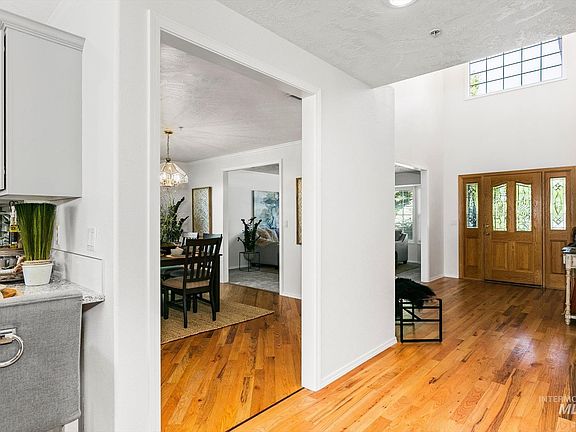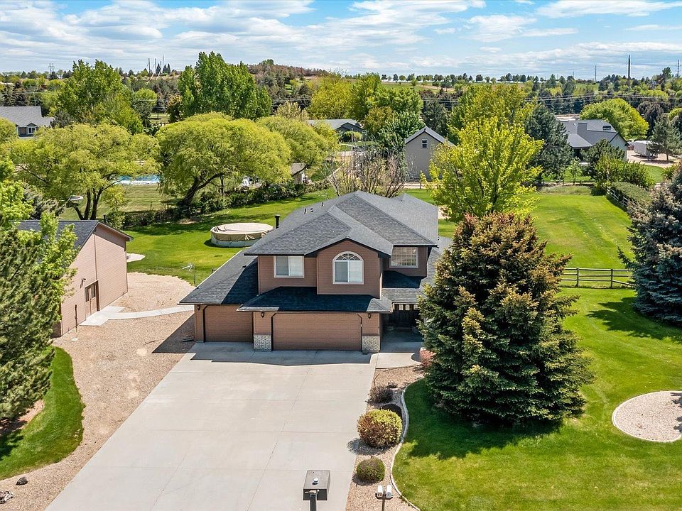 Beautiful home sits on over and acre between Falcon Crest and also Boise Ranch golf courses. The property has a 30X38 heated shop w/220 power and RV bay, large covered patio, olympic sized sand volleyball court, garden area, above ground pool, fire pit, horseshoe pit, mature landscaping. Remodeling complete in 2022 which includes granite countertops, new paint, new carpet. Beautiful hard wood floors were refinished in 2018. New roof installed with 50 year shingles. Within the master bedroom there is a separate room with lots of possibilities. Master bath has a corner jetted tub and dual vanities. The other 2 bedrooms are spacious and have shelving already in place. Corner gas fireplace in the family room makes for cozy family time. The entry way is grand with vaulted ceilings. This home also features auto fire protection system throughout, a reverse osmosis system, large kitchen with storage galore. This is the perfect home for entertaining!