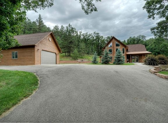 Rustic elegance radiates through this amazing custom built home featuring high vaulted ceilings with 6 skylights, and custom woodwork accents. The upgraded kitchen is gorgeous with tiled back-splash, White appliances, breakfast bar and access to the attached 3-seasons room. Formal dining area surrounded by windows and a sliding door to extend your living area outside. The living room features a floor-to-ceiling rock fireplace and an entire 'wall of windows'. The large master suite has a private bath with tiled walk-in shower, large closet and 10x16 covered patio. Main level laundry room with built in cabinets. The upper level has an open loft with great views out the front windows plus 2nd bedroom and full bathroom with jet tub. Large, private back yard with rock fountain, extensive retaining walls, mature trees & shrubs, 14x19 patio and fire pit area. Behind the detached 2 car garage is a 24x24 Man Cave with built-in bar and pool table. Other Features: Heated floors in the house. Sidewalk to garage, garage and apron heated by radiant in-floor heat. 3M film on all windows giving UV protection and keeping house 40% cooler in the summer. Central vacuum system. Culligen water softener system and Reverse Osmosis Water System in the kitchen. Triple insulated ceiling with storage in garage. Custom screen doors auto open. Pool table,Washer&Dryer and window A/C included in sale. Buyer & buyer's agent to verify info. For more information or to schedule a private showing, call ARLYN DYCE (605) 209-1637 or e-mail arlyn@arlyndyce.com. For up-to-date listings of properties in the Black Hills, go to www.arlyndyce.com