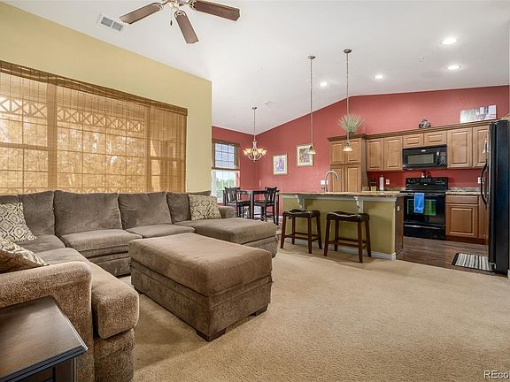 Welcome to comfortable, modern living in a convenient location. This lovely 2-bedroom, 2-bathroom unit boasts an open layout that feels spacious and welcoming from the moment you step inside. The living area is warm and inviting and includes a gas fireplace. The kitchen offers plenty of space for cooking and entertaining with a separate dining area, large island and plenty of cabinets for storage. The spacious primary bedroom has an attached 5 piece primary bathroom and walk in closet. Relax with friends on the private balcony that overlooks the green belt that provides exceptional views. An in unit laundry room and attached 1 car garage offer more storage and convenience for everyday living. This community includes a community pool and clubhouse and is perfectly situated for easy access to local amenities, shopping, and restaurants. This condo is a perfect spot to call home!