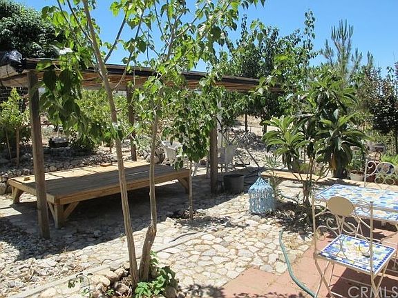 Live off the land with awesome view - Over 250 + fruit trees (Plum, apple, grapes, strawberries, sherry, pear, almond, walnut, chestnut, peach, blackberries, blueberries pomegranate & more!) plus a Green house & chicken coop. Cute and cozy - Laminate floors with wood stove in the living room - Built-in book cases - Bay window - Dual fireplace in the Living room & formal dining area which also features French doors. Tile floors & counters in the kitchen - Master with French doors to the enclosed patio - Mater bath with separate tub and shower. Fenced and cross fenced - Great opportunity!