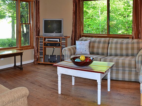 Large warm home and super clean.4 large bedrooms,1.5 baths,den on wooded & open 30 acres.Great open floor plan with rich wood floors. Northport or SuttonsBay schools Organic orchards across the street,perfect site for grapes..Lots of options available.2184 sq. ft. pole barn.A real pleasure to show.Leelanau County..Horses allowed too. Seller will consider splitting the acreage with township approval,zoned agricultural..Lots of possibilities. Perfect B&B location and atmosphere.