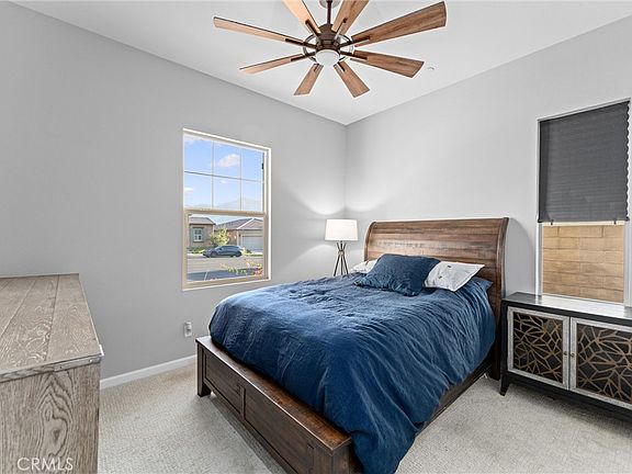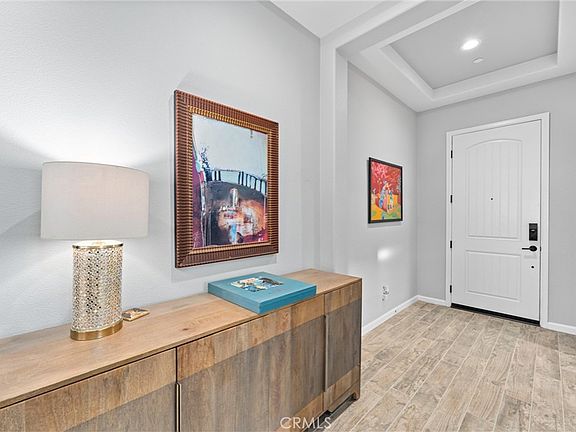 NEW PRICE REDUCTION $699,900K** RESORT LIVING IN 55+ SINGLE STORY HOME | GATED | CUSTOM UPGRADES THROUGHOUT! Step into resort-style living in this elegant, single-story 55+ home nestled on a private cul-de-sac in the prestigious gated-community of Terramor. This open-concept 2-bedroom, 2-bathroom gem is designed for comfort & modern luxury. Enter through a wide foyer, where custom woodgrain tile floors & coffered ceilings set a sophisticated tone. An upgraded kitchen that is a chef’s dream, with whisper grey cabinets, quartz countertops, a farmhouse sink, & an oversized island with a breakfast bar, this kitchen also features stainless steel appliances, soft-close drawers, & ample storage, including deep pot and pan drawers. A gas stovetop, upgraded pendant lighting, & a herringbone custom tile backsplash add an extra touch of refinement. The dining room is bathed in natural light, thanks to dual patio sliding doors that open to your private backyard retreat. The luxurious primary bedroom is a serene sanctuary, with its own oversized slider to the backyard. The en-suite bathroom features dual vanities, a spacious walk-in shower with dual shower heads, custom tile work, a frameless glass door, upgraded lighting, & a convenient bench. The second bedroom is bright & welcoming, while the bathroom #2 also showcases quartz countertops & quality finishes. A bonus room with double French doors offers versatility—it can serve as an office, a family room, or even a playroom. The separate laundry room includes a sink, and plenty of storage. The low-maintenance backyard boasts artificial turf, concrete work, a spa/jacuzzi with custom brickwork, & wrought iron fencing. Enjoy your spa with mountain views, sunsets, or the stars. Upgrades include a built-in speaker system in multiple rooms, a 240-volt subpanel, and exterior gas outlets for a BBQ or spa. This energy-efficient home includes fully paid solar, a tankless water heater, ceiling fans, & LED recessed lighting. Enjoy easy living with drought-resistant landscaping. AMENITIES include pools, spa, clubhouse, parks, walking paths, & multiple dog parks. Located near shopping centers, & quick access to 15 expressway. Experience the perfect blend of luxury, convenience, & privacy in this exceptional home.