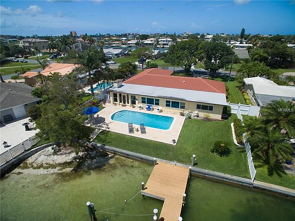 This home is very spacious and at only $286 per sq. foot this home is priced for a buyer to do any cosmetic touches that will "wow" all who enter! Drive your YACHT or BIG POWERBOAT and cruise straight in to deep sailboat water & 83 feet of waterfront! One-owner lovingly maintained this water-front home in highly desirable Capri Isle. Views are incredible as you see straight-up the canal. Yet this home is in a protected canal and comes with your own PRIVATE BEACH! Perfect for jet skis, SUPS or lounging in your beach chair. Built by legendary builder Jack Apple, who said, "Be honest & never build something you wouldn't live in yourself," this stellar home is ready for another generation where boating, fishing & water life keepsakes are plentiful. Designed with a SPLIT PLAN, the master bedroom is on one end & two guest rooms on the other. updates: EXTENDED LIFE CERAMIC TILE ROOF & FLAT ROOF (2015), ALL HURRICANE IMPACT WINDOWS & DOORS (2014), RE-MARCITED POOL (2013), WOOD BURNING FIREPLACE, HVAC (2013) and under all the carpet & parquet floors lies light & bright TERRAZZO FLOORING! The kitchen has CUSTOM WOOD CABINETS & CORIAN countertops plus a large walk-in pantry. There's a wood burning fireplace in the den & all bedrooms are very spacious. Prepare to live many happy years on the water, watching dolphins & making new memories galore. [Located only 1 mile from Treasure Island's sugar sand-beach & less than 1 mile from over 13 restaurants!]