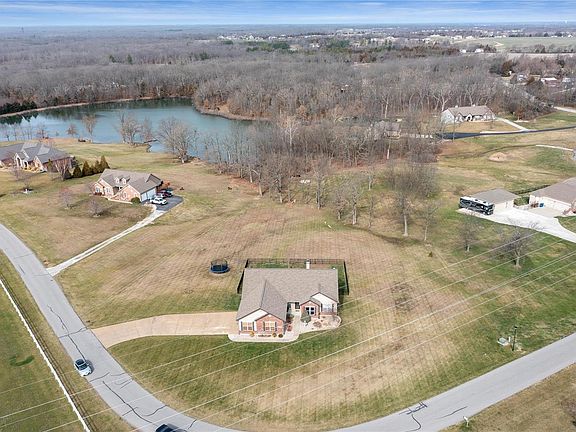 Custom ranch home located on 3 ac in a private subdivision. Enjoy the feeling of country living with a short drive to all city amenities. Upgrades are endless as you walk in the front door to the 10 ft ceilings throughout the main floor with lighted 4 piece crown molding. The spacious great room is impressive with the hardwood flooring, natural light, and wood burning fireplace. You will love entertaining in the bright kitchen that has endless white glazed cabinets, breakfast bar, stainless steel appliances, a walk in pantry, granite countertops and ceramic tile flooring. The master bedroom suite is very cozy with additional room for a sitting area. The master bath has dual vanities, a tile shower and a walk in closet. The main floor has 3 additional bedrooms 1 1-2 bth. The partially finished w/o lower level has a bonus room, family room, a tiered media room bar and a half bath. Off the kitchen you will find a deck with stairs that lead you to a partially fenced yard and water view.
