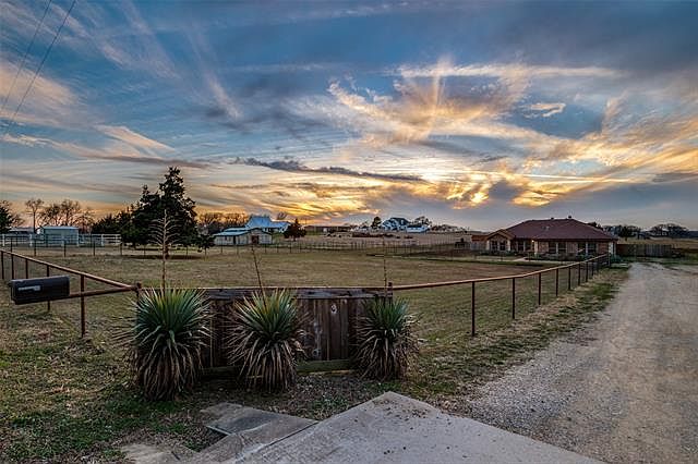 AFFORDABLE SMALL ACREAGE HORSE PROPERTY. Horse Country USA!View Lake Ray Roberts from the back porch! Calf roper,breakaway roper,or barrel racer's dream property surrounded by modern homes and other equine properties.36X72 barn,asphalt foundation,electric,water and fully lighted 40x275 calf roping lane.Rain system attached to the barn! Barn easily accommodates 8+ stalls.(see rendering)Plenty of trailer parking next to barn with additional RV hook-up.Bonus sandy loam pipe fence turnouts, outdoor dog runs, hot walker location with electric,cement base installed.Newer hot water heater,stained concrete floors,bonus living area with large closet that could easily be an office.No shortage of storage space!