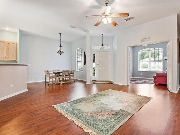 Welcome home to your private oasis in the Exclusive Gated Golf 55+ Community of STONECREST only minutes from THE VILLAGES, FLORIDA! You'll enjoy views of the pasture with Majestic Oak trees from your enclosed LANAI and screened enclosure/Birdcage! 2 Bedroom plus DEN and 2 bath with 10 foot ceilings throughout! Master bedroom Suite appointed with oversized walk-in closet, Bay window, access door to Lanai, walk-in shower, Soaking tub and dual vanities! French doors to Den off the Living/Dining Area. Laminate floors throughout with Vinyl in wet areas! Sliding screen door over garage door with laundry tub in garage and LAUNDRY ROOM inside home! This home is very open and bright!