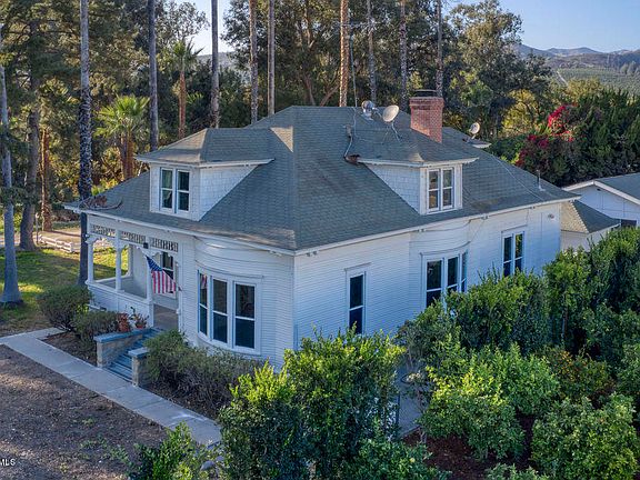 Family owned secluded one acre Santa Paula Estate with 3 separate structures and amazing potential! The main structure is a one of kind 4 bedroom, 3 bath 2338 sq ft home built in 1900 with architectural features sure to please. This non-historic classified house has plenty of character but can be redesigned without special historic approval! Inside it has real hard wood flooring on first level with office, living room, family room, country style kitchen and laundry room. It also has a down stairs bedroom and bath. Up stairs, has 3 bedrooms and 2 baths with old world charm! The second structure is a well built 2 room tool house which accompanies the large 7 car garage 3rd structure. This one acre lot also has a chicken coop with large extra shed in the back and toward the front has several fruit trees. This a very private estate that has plenty of room to expand or remodel, to make your very own custom oasis!