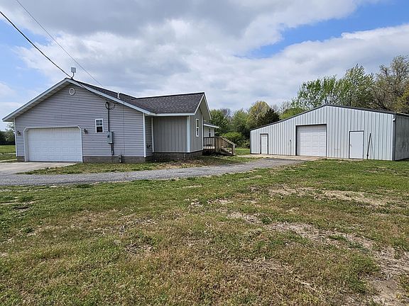 3BD 2BA Total Electric Home on west side of Neosho. Built in 2003, has a 2 car attached garage, storm shelter, covered front porch, back deck, storage building(11.6 x 11.9) w/loft, detached 2 car oversized garage/shop(30 x 40) with office(11.4 x 19.3 w/concrete floors, electric, window air unit in office). Home has beautiful custom oak cabinets, open floor plan. Storm shelter is off of master bedroom suite. Master bathroom has a jetted tub. New carpet is being installed in bedrooms and also new vinyl plank flooring in main living area of home. Pump on well is around 1 year old as per seller. The attached aerial portion with this option is highlighted (.83 Acre). Security cameras on property do not convey.