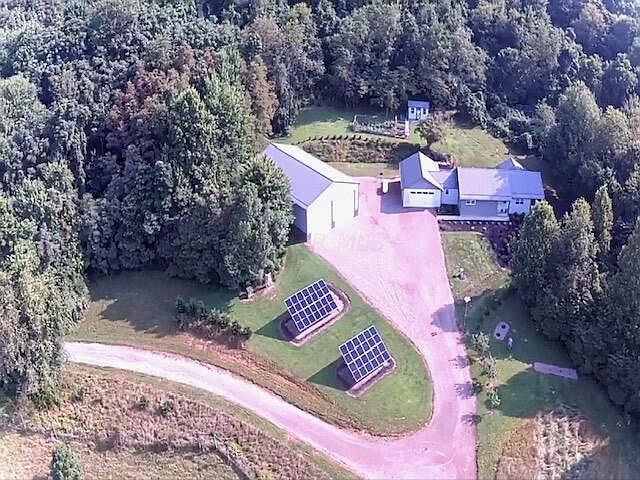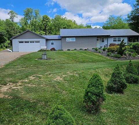This custom home on 21.9 acres features a 40x64x16 pole barn with water and electric, net zero solar panels during the summer, whole house generator, oil royalties of $3000/year +/-, water catchment system, buried electric, wrap around covered porch, propane tank owned, security cameras, metal roof, wooded lot with amble wildlife, large outdoor living area, beautifully landscaped yard, garden shed, and more. Interior features quartz counter tops, large primary suite with luxury bath, partially finished walkout basement, 2 car attached finished garage and much more.