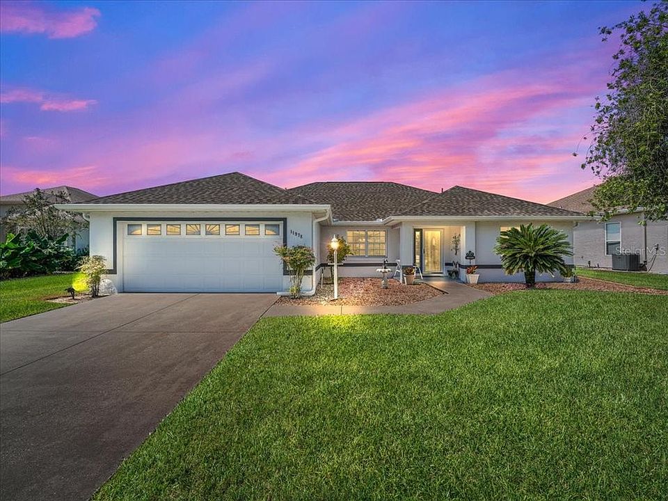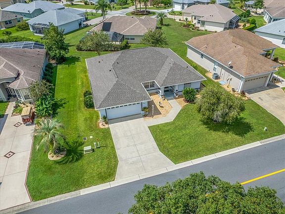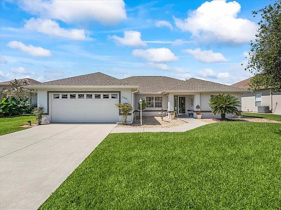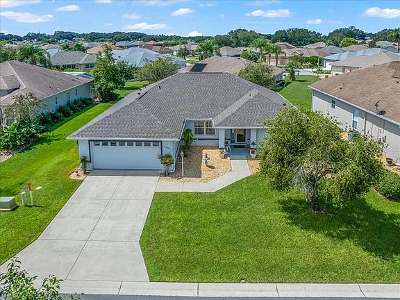 Stonecrest 55+ golf course and country club, just a golf cart drive away from the villages! This concrete block and stucco home has three bedrooms and two baths. New Roof 2021, A/C 2018, Water Heater 2020, Water Purifer for home 2017, and New Luxury Vinyl flooring 2019. High vaulted ceilings, updated painting on the inside, split concept plan and plant shelf in living room and kitchen. You will be delighted with the updates and cleanliness of this home. The screen lanai is under roof and is open and spacious. Two car garage and easy to maintain lawn. Lovely glass storm door at front door that enhances the light and bright feel of this home. You do not want to miss this great offer!!