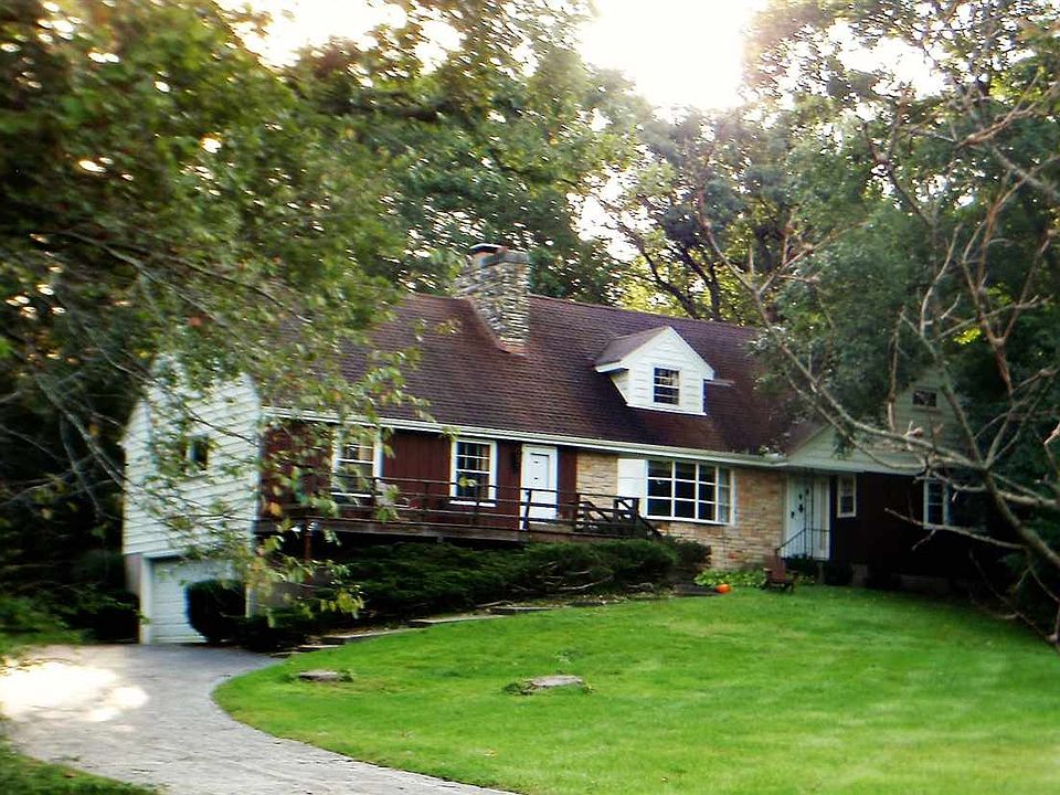Cape Cod Charmer will steal your heart. This wonderful 4 Bedroom, 3 Bath Home in coveted Ledges subdivision features a private treed yard, multiple decks, and large size rooms. Step into this 3000 sqft home and think about all the possibilities. There is a wonderful formal Living Room featuring a stone fireplace that looks through to a massive Family Room with beamed ceiling, and lots of natural light. The formal Dining Room is off the large eat-in Kitchen and deck to the wooded backyard. The main floor features 2 full Baths and 2 large Bedrooms with hardwoods floors. Upstairs has two more massive Bedrooms with walk-in closets and hardwood, and another full Bath. Many updates. Sold "As Is".