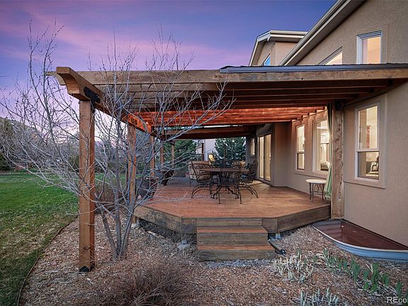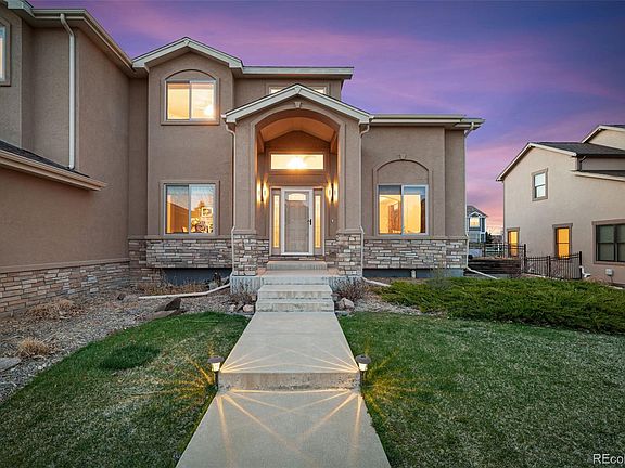 Stunning two story stucco custom build. Designer finish choices and seamless floorplan. Grand two story entry way with sweeping staircase and Hickory hardwoods greet you. French doors into the large office. The front facing workspace has oversized windows and tray ceilings. Two story great room includes a floor to ceiling fireplace and beetle kill pine accent wall. The open concept space is situated together with the kitchen and a large doorway leading to the covered back deck. Eat-in kitchen with a baker’s island is great for entertaining. The kitchen has the perfect sized footprint. Finishes include Cherry Cabinets, Slab granite counters, stainless appliances including a gas stove. The dining room features a coffered ceiling and custom lighting. Formal sitting/living room with loads of light through the oversized and south facing window bank. Additionally, the laundry room is on the main level. The three car attached garage has access to the fenced side yard for a dog run. Upstairs the primary suite awaits. Large room with ensuite bath and two walk in closets! Three more bedrooms all on the same level and an additional bathroom complete the upper level. The home also has a full basement, unfinished! Some framing is in place and two egress windows! This is the perfect location being both Convenient, and an established neighborhood. Parks and walking trails are at your doorstep. With County maintained trails up to Kendrick Park! This home has private outdoor space that was professionally designed and installed to achieve privacy and colorful seasons with blooms and leaves changing. Front and back yard irrigation and smart Colorado plant choices. Location, Landscape, and Luxury! The true trifecta!