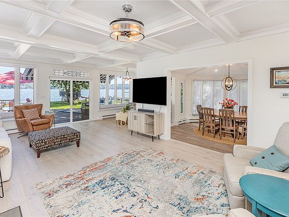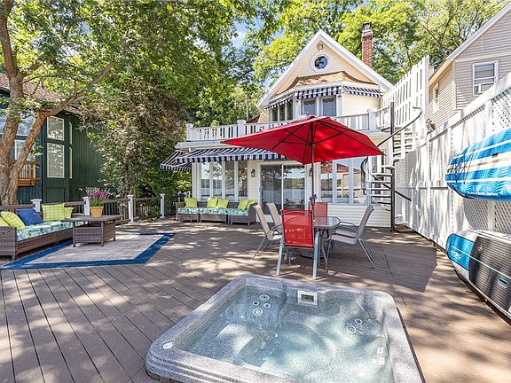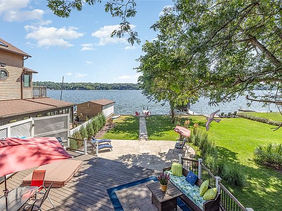 DREAM COME TRUE! Experience luxury and tranquility with this Irondequoit Bay 3-bed, 2-bath waterfront home! Be amazed when you step into the heart of the home: Entertainer’s kitchen DESIGNED TO PERFECTION features incredible custom built cabinets, 80" x 61" granite island & induction cooktop. The kitchen is COMPLETELY OPEN to a generous living area with space to dine, relax by the gas fireplace or curl up by the windows to gaze at the Bay. Step out onto an EXPANSIVE DECK complete with hot tub & spiral staircase to the balcony. You'll love the new stamped concrete patio & new permanent floating dock with jet ski port. This home also has a super cool attic that can be an awesome living space with your finishing touches. ALL HARDWOOD through 1st & 2nd Floors. There is a 3-CAR GARAGE that includes a lower-level workshop with a view. A separate outbuilding provides versatile space for whatever inspires you! An elevator allows easy access between the garage and the home. Additional features include a new mudroom, a whole-house generator & extra parking across the street. EXTENSIVE LIST OF UPDATES AVAILABLE. By Appointment Only. EXCEPTIONAL. Delayed negotiations: Tuesday August 20 at 5pm.