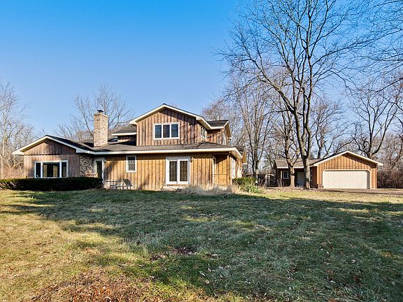 Welcome home to acres of rolling countryside yet close to shopping, and commuter access.Your private haven includes a detached 3 car garage and an attached 2 plus car garage. Looking for that art studio or car enthusiast, this is a perfect home! Living room opens to dining room with hardwood floors. Kitchen will please with center island and pantry storage. Family room has hardwood floors brick fireplace and beamed ceiling. Beautiful windows overlook sylvan setting. There are five bedrooms, three on the main floor and two with a loft area upstairs. There is a main floor laundry and attached two car garage. There's a beautiful stream and pond on the property to enjoy year round. ALL THIS AND GRAYSLAKE SCHOOLS TOO! See additional information for tax and zoning information. Property is being sold "as is"