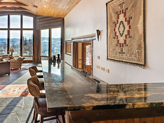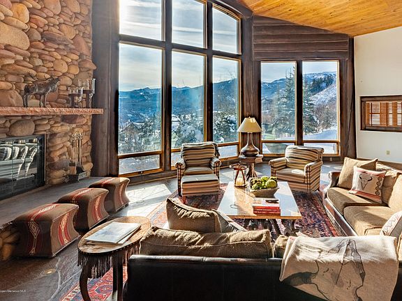 What a great family or entertaining home with a spacious great room that has floor to ceiling windows and stone fireplace that frames the Snowmass Mountains. This 4,941 square foot log home is why we move to Colorado. You can relax and look at the views, cook in the amazing chef's kitchen with Le Cornue Appliances and Flamberge Rotisserie, dine in the great room or play pool. All the space in this home is above grade. There is a wonderful Family Room Library with a TV space for have those cozy evenings by the fire, In the summer sit outside by the fire pit, enjoy the Jacuzzi and listen to the sound of the waterfall coming down the hill side. Throughout the home there are alder cabinets, wood and stone floors and special finishes on the walls and in the bathrooms.