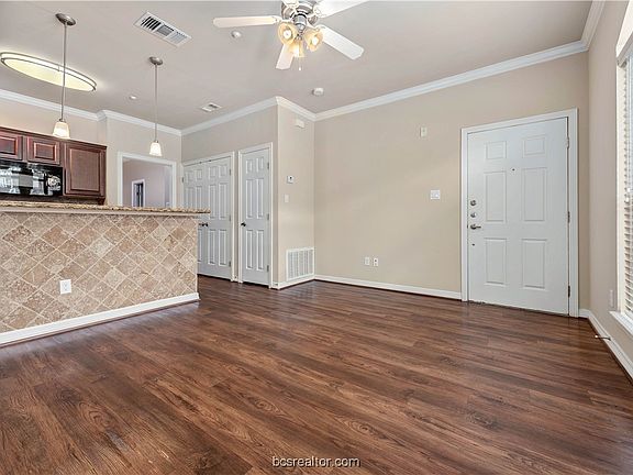 Explore this exceptional condo located in the sought-after Lakeridge Townhomes community. Designed with a spacious floor plan, this home offers a large living area, a kitchen with granite countertops and an eating bar, and a bedroom enhanced with a charming barn door. Convenience is key with its proximity to the TAMU bus route and a shuttle stop just outside the gated entrance. The Lakeridge community boasts upscale amenities, including a resort style pool, clubhouse, fitness center, study area, and business center. HOA fees include cable, internet, and water, simplifying your monthly living expenses. Nearby, the Jones Crossing shopping center offers a variety of dining and retail options, including H-E-B, Chick-fil-A, MOD Pizza, and more. Schedule your showing today to experience everything this condo and community have to offer!