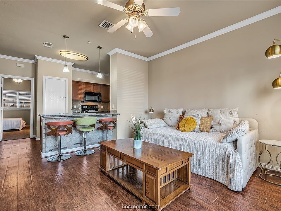 This 1 bedroom 1 bathroom floor unit is like new! The unit comes equipped with granite counter tops, vinyl flooring in main area and carpet in bedroom, walk in closet, eating bar and more! Gated community has so much to offer... swimming pool, work out room, tanning beds, basketball court, lounge area, movie theater room and is on A & M bus route. You don't have to worry about someone taking your parking spot because there is reserved parking!