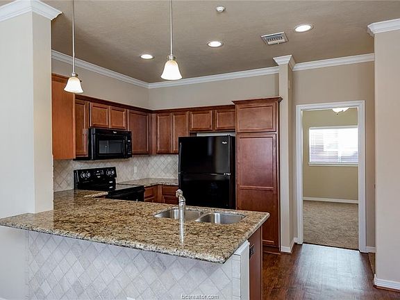 PRE-LEASING for Summer 2021 move in - available starting June 1st! This three bedroom/three bathroom condo in popular Lakeridge Townhomes offers outstanding community amenities and is only minutes from the new HEB shopping center. This condo is within biking distance to Texas A&M and is conveniently located on the Texas A&M bus stop! Each of the three spacious bedrooms have a private bathroom and large walk in closet. Granite counter tops, eating bar, microwave, refrigerator, electric cooking range and dishwasher in kitchen. Wood laminated floors in the living room and tile in wet areas. Washer/dryer and refrigerator included. The condo has three designated parking spots for ease of parking. Loaded with many amenities including swimming pool, basketball court, gym/fitness center, movie theater, study/ game room etc. Rent even includes water, cable(basic) and internet! Owner is a local licensed Realtor and manages this unit along with just one. No management company to deal with!