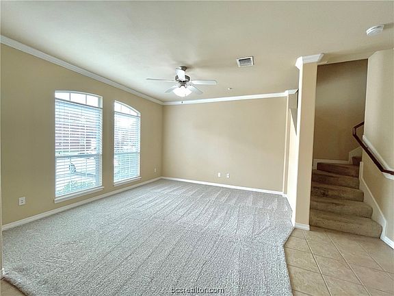 This four bedroom four and a half bathroom condo in the gated community of Lakeridge Townhome Condos offers many community amenities and is located within biking distance to Texas A&M and conveniently located on the Texas A&M bus stop! Minutes away from the new Jones Crossing shopping center (with HEB) and the new Brookshire Brothers grocery. Each of the large four bedrooms have a private bathroom, large walk in closet and are individually temperature controlled. Granite counter tops, pantry, eating bar, stainless steel refrigerator, and black-style microwave, electric range & dishwasher in kitchen. Beautiful title floors in kitchen & baths with new carpet in living room. Washer/dryer and refrigerator included. This unit has an abundance of natural light! living space opens to dining and kitchen with a half guest bath on the main living floor. Just off of the kitchen is a door leading to a private fully fenced patio, just steps to beach entry community pool and clubhouse. The condo has four designated parking spots for ease of parking. Lakeridge Townhomes offer many amenities including swimming pool, gym/fitness center, basketball court, community lounge study area/game room stocked with coffee bar, ping pong table, conference room and business center, etc. HOA dues include water and internet. Don't miss your opportunity to buy in this sought after community! The Location is the icing on the cake.