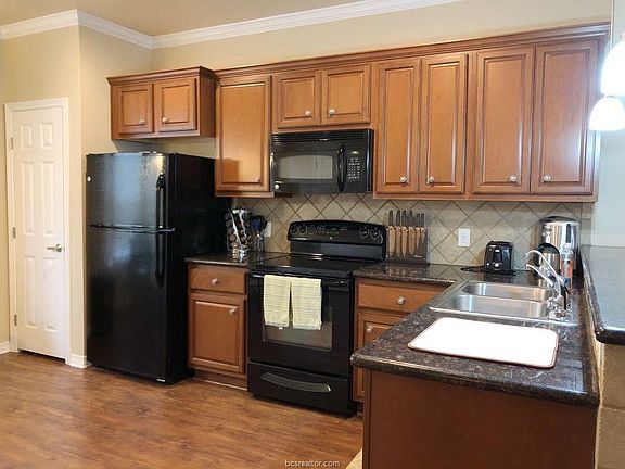 Located just ONE MILE away from Texas A&M & on the TAMU bus route! This remodeled 2B 2.5BTH townhome is located next to the resort style pool & clubhouse and offers low-maintenance living. Open concept with dining & kitchen area with granite countertops, plenty of cabinet space and half bathroom. Oversized bedrooms with their own personal full bathrooms, walk-in closets, individual thermostats & private parking space. Amenities include clubhouse equipped with study areas, business center with free printing and Wi-Fi, pool table and 24-hour stand-up tanning booths and fitness center. HOA fees provide cable, internet and water coverage. Living area, kitchen and washer dryer can convey.
