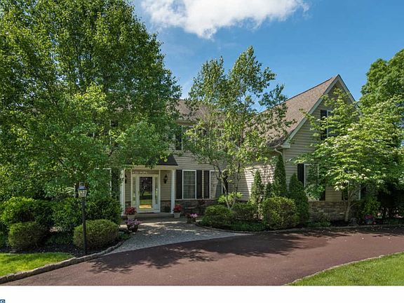 From the moment you drive into the circular driveway of this gorgeous home, you will see no detail has been spared to upgrade this home to make it truly spectacular. From the custom stacked stone facade, to the professional landscaping to the EP Henry paved walk way leading you to the front porch you will know the current owners have lovingly cared for this home and wait until you see the inside! Step thru the front door into the 2 story foyer featuring hardwood flooring that flows into the formal living room and back thru the dramatic, two story family room where you will enjoy cozy nights by the gas fireplace with raised hearth and custom mantel surround. Cooking will be a pleasure in this custom kitchen equipped with a center island with a second sink, an abundance of cabinetry many of them with glass fronts, granite counters, stainless appliances and ceramic tile flooring that flow thru to the formal dining room with custom inlay tiles. The breakfast room has a sliding door leading out to the incredible three tiered deck with a sunken hot tub which overlooks the private fenced backyard backing to woods and a stream. Also on the main level you will find a very versatile two room suite that could be his-n-hers offices or a 1st flr master suite. There is also a half bath and laundry room on this level. Front and back stairs leads you to the upper level with hardwood floors in the hallway flowing back thru the master suite with a double door entry, a sitting room and two walk-in closets. Enjoy lounging in your jetted soaking tub in the master bath featuring custom tile floors and shower and a double sink vanity. There are also three other generous sized rooms on this level, two sharing a jack-n-jill bath and another utilizing the third full hall bath. And if this isn't enough space then make your way to the lower level and enjoy lots of fun times in the custom finished basement fully equipped with a large family room, wet bar and powder room. There are also sliders leading to an EP Henry paved patio to take your entertaining outside. Other features of this home include: upgraded chandeliers, custom painting on walls, a 3 car finished, heated garage with a 230v hookup and epoxy floor and 2 sheds that match the house. All of this plus you are minutes in walking distance to shopping and restaurants in the historic, quaint Skippack Village. Square footage includes approximately 800 finished square feet in basement.