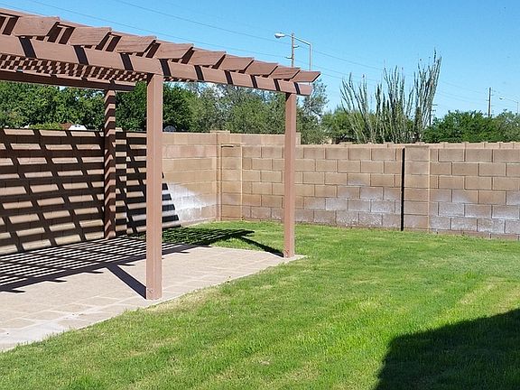 The minute you walk into the front door of this charming 3 BR 2 bath home. Just over 1500 sq feet you will especially enjoy your fenced in backyard that proudly displays a large patio with Pergola cover. A fenced off garden area. Pavers that are great location for barbecue grill (included). There is also a large 10 x 10 storage shed to help reduce the clutter. There is a side RV gate for trailors , boat, or other toys. Inside you will enjoy the Master Bedroom that has a large walk in closet, and large shower. Ceiling fans throughout. If you enjoy a good sudsy cold beverage after work or weekends? You have a keg-erator in the kitchen. Check it out. The 2 car garage has additional storage and workspace available. Ready for immediate move in. Pet friendly.