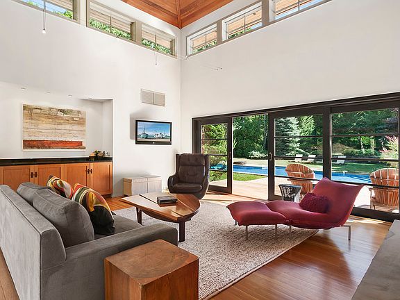 Set on two gorgeous acres of beautifully landscaped property in desirable Sagaponack, this modern 4 bedroom, 3 bath home has so much to offer. Enjoy the pleasures of single-level living, and double your living/entertaining space by bringing the outdoors in via floor-to-ceiling glass doors that open on to mahogany decking, heated gunite pool and gorgeous gardens. The gourmet kitchen and double-height great room with an immense double-sided stone fireplace make for spacious and easy year-round living space. Large master suite, spacious guest bedrooms, finished lower level with staff bedroom, 2 car garage and more. Located a quick bike ride away from Sagaponack ocean beaches or Sag Harbor Village.