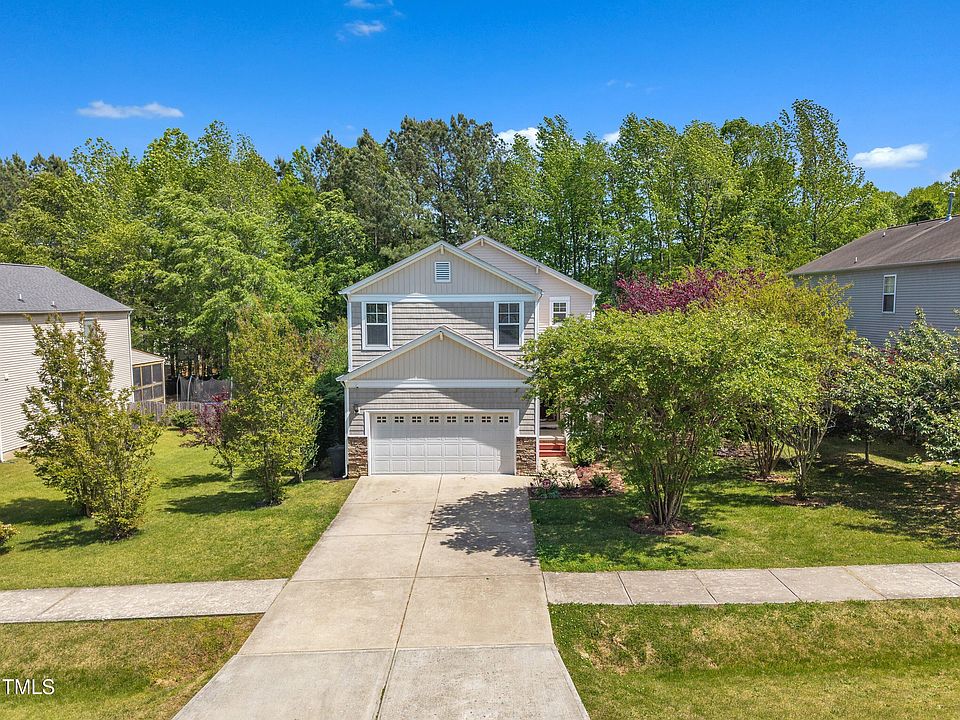 Welcome to this beautifully updated 4-bedroom home featuring generous bedrooms with walk-in closets, an oversized kitchen with ample cabinetry, and an open layout perfect for both entertaining and everyday life. The primary suite offers a luxurious retreat with a soaking tub and upgraded shower. Upstairs also includes a versatile loft and convenient laundry. Enjoy outdoor living on the screened-in porch or new deck (2022), overlooking a large, private backyard with mature trees and a storage-ready shed. Recent updates include a new roof (2023), HVAC (2024), and flooring and paint (2025). Nestled in a community with a pool and clubhouse, and within walking distance to Falls Lake Academy.