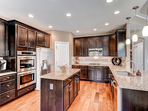 Outstanding Value - NEW PRICE! Gorgeous Contemporary Remodel, 2 story, 5 bed, 3 baths, with a 3 car garage. Enjoy mountain views over coffee or stay inside and enjoy 3,067 SF of above ground finished living space. This home has an open floor plan for entertaining. Gourmet kitchen with 42 inch cabinets, crown, granite, stone back splash, stainless steel appliances, wine chiller and a gas cook top. The foyer and Family room have towering 18 foot ceilings with large windows allowing bright sunlight to show off amazing cherry wood floors. The master closet is 16 feet long and 8 feet wide. Unfinished 960 SF basement, spacious backyard with shed, Roof is 3 years old, reasonable HOA fees and Taxes. Walking distance from Iron Horse Elementary, Hidden River Subdivision. Why wait on backlogged new builds when you can have your dream home Today!