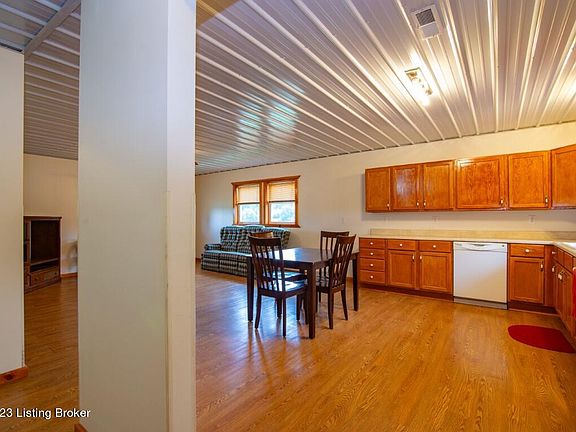 Almost 2 ACRES with lovely views of the surrounding hills and neighboring Daylily farm! Mostly handicap accessible, this ranch style home is easy to maintain. Great location - close to Blue Oval SK, factories in Elizabethtown and the Kentucky Whiskey House on 62W. Only 45 minutes to airport and 5 miles to WK Parkway. Convenient carport connects the home to the 28'x30' - 2 car garage, keeping you dry when unloading groceries, etc. The home has extra insulation, keeping electric bills in the $30 per month range. There is a stocked fishing pond on the property and mature apple trees! The half bath is plumbed for an additional shower. All appliances to remain, including range, refrigerator, dishwasher and washer/dryer. Call today to schedule your private tour!