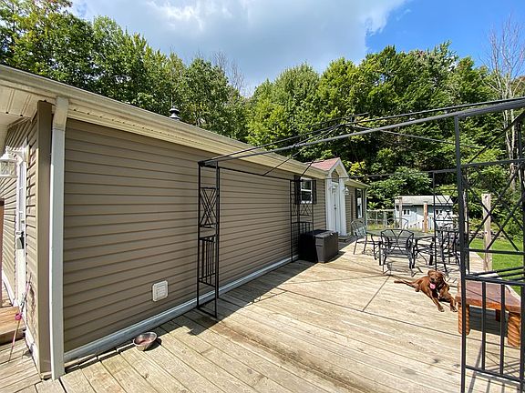 Quiet country living located just 7 miles to Corning. This home features an open concept living room, kitchen and dining area. Stainless steel appliances. Owner suite and walk in closet with two additional bedrooms and full bath at the opposite end of the house. Enjoy a morning coffee on the deck and listen to the beauty of nature all around you on the 2 acres of land. It's a private location on a dead end road with little traffic nearby. Two story shed with an additional workshop area. Spectrum Internet available!