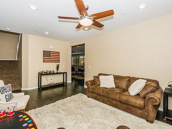 Absolutely an adorable home in Harvest Village of Jurupa Valley. With almost 3,400 sq ft of living space your new home is highly upgraded (please see attached list, or have your Realtor send it to you or call us for it) but too many to mention here. This 5 bedroom / 3 bath home is designed with energy efficiency at its' heart. The sun pours in thru all the "Low-E" windows but not the heat. Ceiling fans, window covering and LED lighting also aids in the modest usage of power....Which, mainly comes from the Solar System installed at the residence!! And then there is custom paint, custom flooring and custom cabinetry throughout (including the garage!). The Kitchen, wow the kitchen is made for the cooks and the "eaters" of your family. It is simply GREAT! The Master's suite demonstrates the culture of this fine home, with a large bath and a walk-in closet that cannot be described in words, you must see it to completely feel the $15,000 upgrade in it ! ! COME! See How Much Home Just Fell Into Your Price Range.....