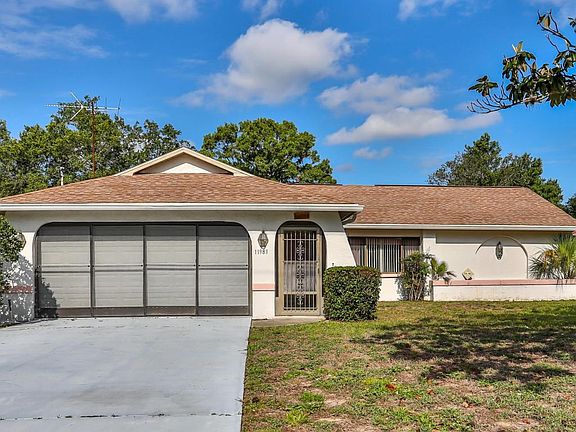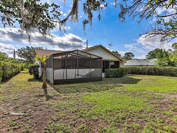 This home features an open floor plan with a great room, dining area, a large eat-in kitchen with a pantry closet, 2 spacious bedrooms, 2 bathrooms, and a 2 car garage. The bedrooms are of split design providing privacy for the master suite. Other features include an inside laundry room, screened entry, garage has pull down stairs for attic access and screen sliders, a skylight to allow an abundance of natural light and a pass through window/counter from the kitchen to the screened patio. The patio is extended with an additional screened enclosure. Lots of privacy in the yard with hedges on 2 sides and a wood fence along the back. Roof 2007. A/C 2006. Repaired settlement property with full documentation. Just needs a little TLC to make this house your home. Call today!