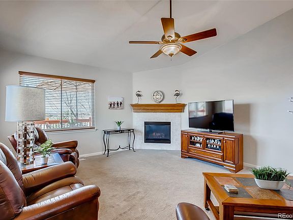 Stunning mountain views of Pike's Peak from your beautiful deck and from nearly every room in this beautiful Hidden River 3 bedroom, 3 car garage, ranch home! Be inspired by this gorgeous view 365 days a year! The home rests on a premium walk out lot with two outdoor spaces to enjoy daily, and entertain family and friends! The spacious, private, and renovated upper deck invites you to enjoy the majestic mountain views shaded by mature trees that enhance the generous back yard. The lower level has a cozy patio that can be accessed from the upper deck, or the walk out basement; patio has recessed lighting and a fan to circulate air on warm summer evenings. The spacious kitchen includes an island, eating nook, granite counter tops, designer backsplash, wood flooring, newer appliances and a pantry. Kitchen flows into the formal dining area and great room that is complete with a gas fireplace and sliding doors that open to the deck. Master bedroom has more than generous space that includes it's own entrance to the deck; 5 piece master bathroom with a gigantic walk in closet that you have always dreamed of! 2nd main floor bedroom is currently being used for an office. The finished basement has a HUGE family room, a full bathroom, and an oversized bedroom that is light and bright with two large windows. Giant storage room with small workshop area. Hail resistant roof installed in 2020, newer windows installed in 2011 and the majority of the home has new siding due to hail storms. This is a wonderful neighborhood that is close to schools, parks, trails, and Mainstreet Parker! This loved, beautiful, and well maintained house is waiting to become your next home!