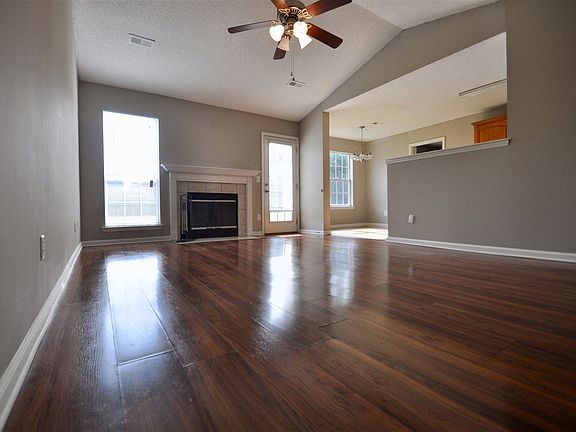 Covered front porch. Isolated Master. Wood floors in foyer. Open Kitchen with pantry. All black self clean oven and dishwasher. Honey Oak stained cabinets with black formica granite counter tops and brushed silver pulls in the Kitchen. There's lots of lighting in the Breakfast Room. Beautiful cathedral ceiling in the Great Room and a tiled fireplace. Very large Master Bedroom and Hall Bathroom.
