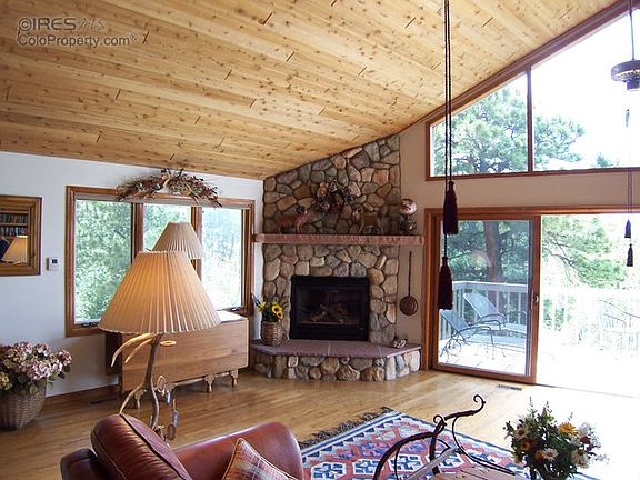 Spectacular Continental Divide views from this quality custom home on 13 acres. Hardwood and wood cathedral ceilings are accents to many built-in cabinets and book shelves. Grand living room with wall of glass with views from Longs Peak to Arapahoe with Gross Reservoir in the foreground. Sloping acreage with good timber and rock outcroppings. The property is located at the end of private lane assuring solitude and privacy.