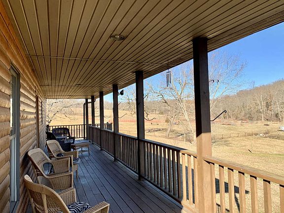 What a Beautiful setting for this Nice 3 bedroom, 2 1/2 bath Log sided home with 2 car attached Garage all on 158 m/l acres! This property offers a Great mix of open pasture and trees. There are 2 ponds and a spring fed creek for Livestock and wildlife use. The home features a Master suite with 2 Large walk-in closets and a large jetted tub. The Walkout lower level has 2 bedrooms and a bath as well as a Family room. LOTS of storage through out the Home! Come see all the Great Features this property has to offer!