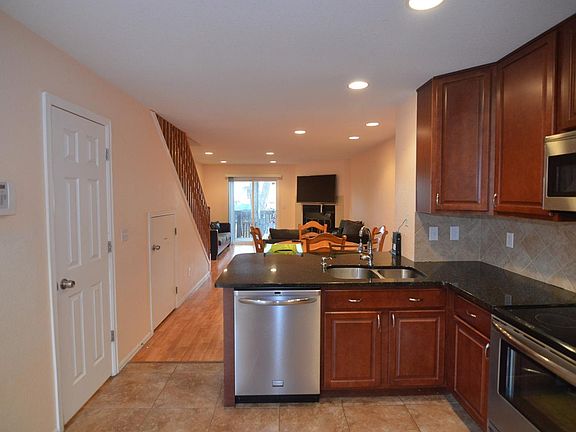 Do not miss this gorgeous townhouse in the Peachwood neighborhood! Ideal commuter location offering easy access to I-225, Cherry Creek Schools, parks, shopping, restaurants, and much more! Inside you are greeted by laminate wood flooring throughout the majority of the home and an open floor plan. Family room with a wood burning fireplace helps keep the interior warm and cozy. Deck off of the family room offers great outdoor living space. Beautiful kitchen finished with granite counters, matching stainless appliances, designer cabinetry, and a tile back-splash. 2 bedrooms and 2 bathrooms on the upper level including the master suite. Half bath on the main level. Do not miss this gorgeous home boasting pride of ownership throughout. Book your showing quickly!