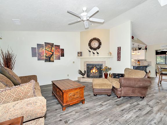 - Interior Features: Ceiling Fan(s), Fireplace-Gas, Live on One Level, Master On Main, Raised Ceilings 9+ft, Smoke Detector(s), Walk-In Closet(s), Wash/Dry Connection, Formal Dining Area, Skylight(s), Garden Tub, Counters-Solid Srfc, Garage Door Opener(s)