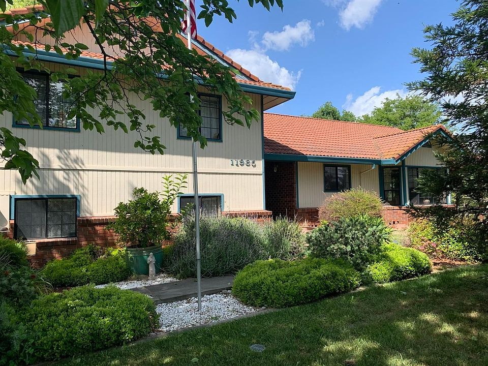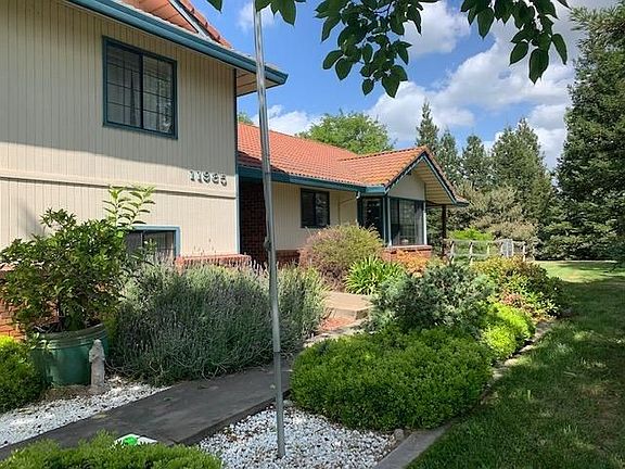 Beautiful & clean 3 bed 3 bath home w/3 car garage on 4.77 acres. Includes Blt-in pool and a guest house w/attached 3 car garage . Kitchen is updated w/Quartz counters & dishwasher. Carpeting 1 yr. old & newer elec. frplc. Dwnstairs Bdrm. with full bath in hallway. Guest house incl. a bedrm, bath, liv. rm, full kitchen and 2-car garage. Paved driveways, beautiful landscaping front & back. Large fenced deck in back and also a side patio. Apple, pear, plum & fig trees in yard. A beauty! Easy to show.